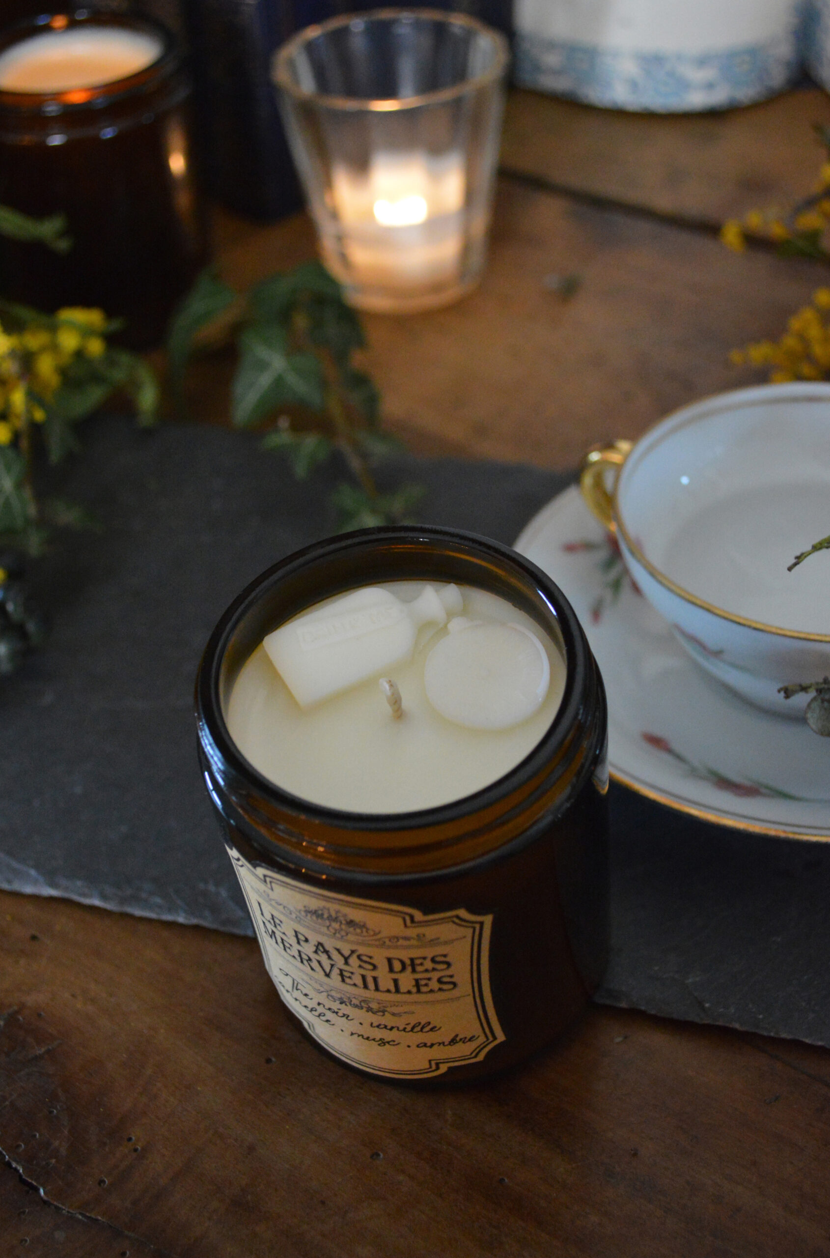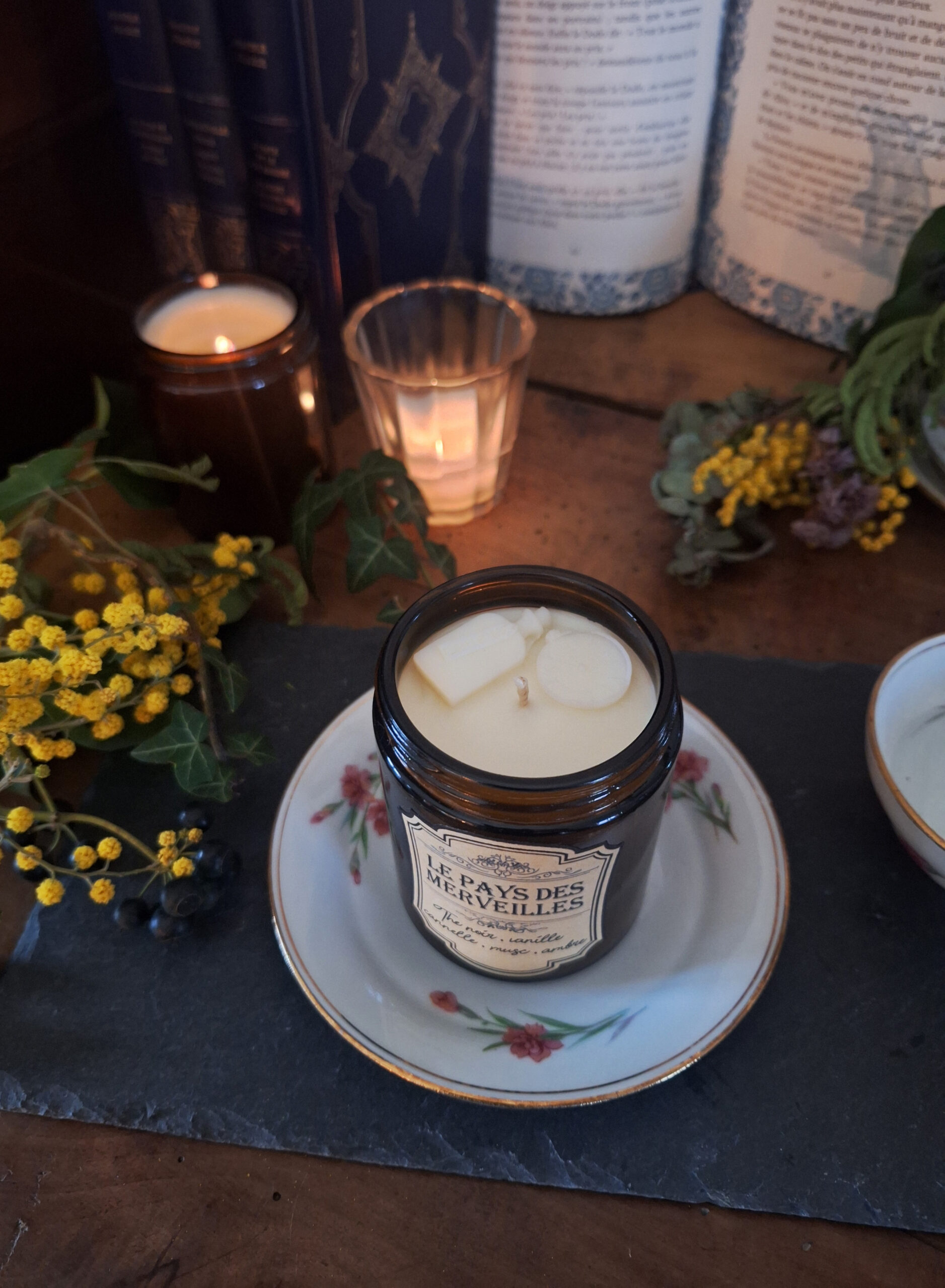Composition : cire de soja certifiée sans OGM, parfum de Grasse garanti sans CMR ni phtalates, mèche en coton avec une âme en papier.
